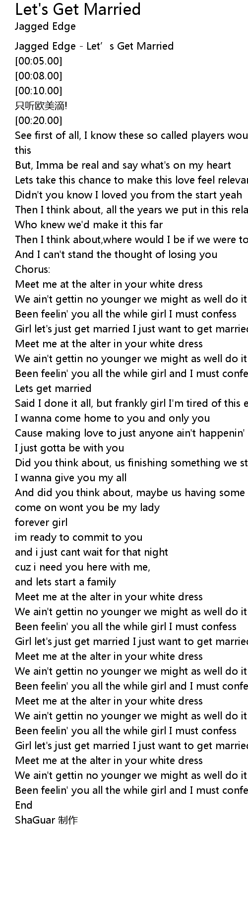 | [00:00.00] | Jagged Edge Let' s Get Married |