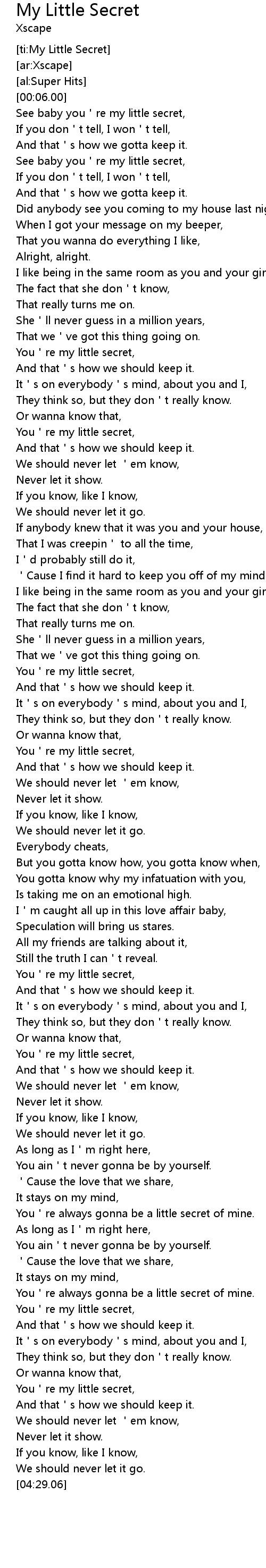 | [03:54.32] | You're always gonna be a little secret of mine. |