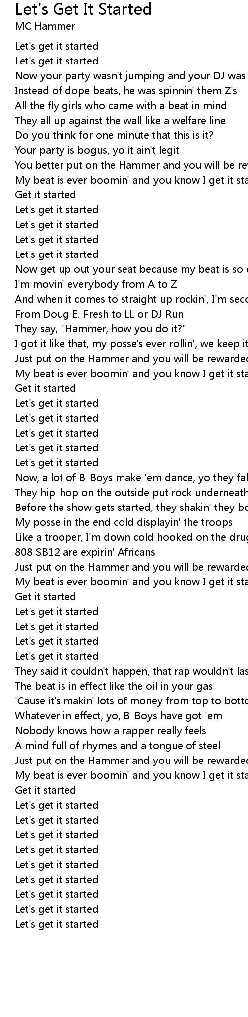 | My beat is ever boomin' and you know I get it started | |