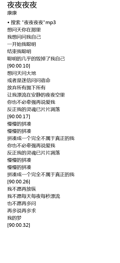 | [90:00.04] | • 搜索 "夜夜夜夜"mp3 |