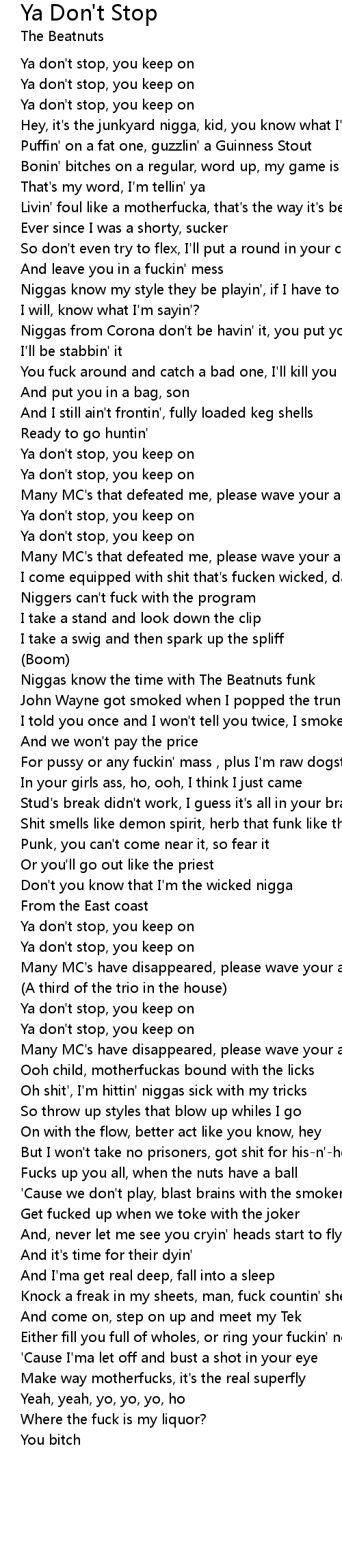 Ya don't stop, you keep on |