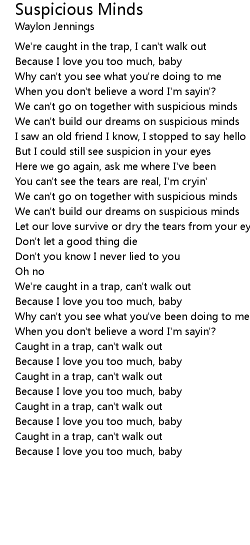 We can't go on together with suspicious minds |