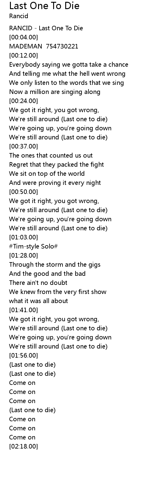 RANCID - Last One To Die |