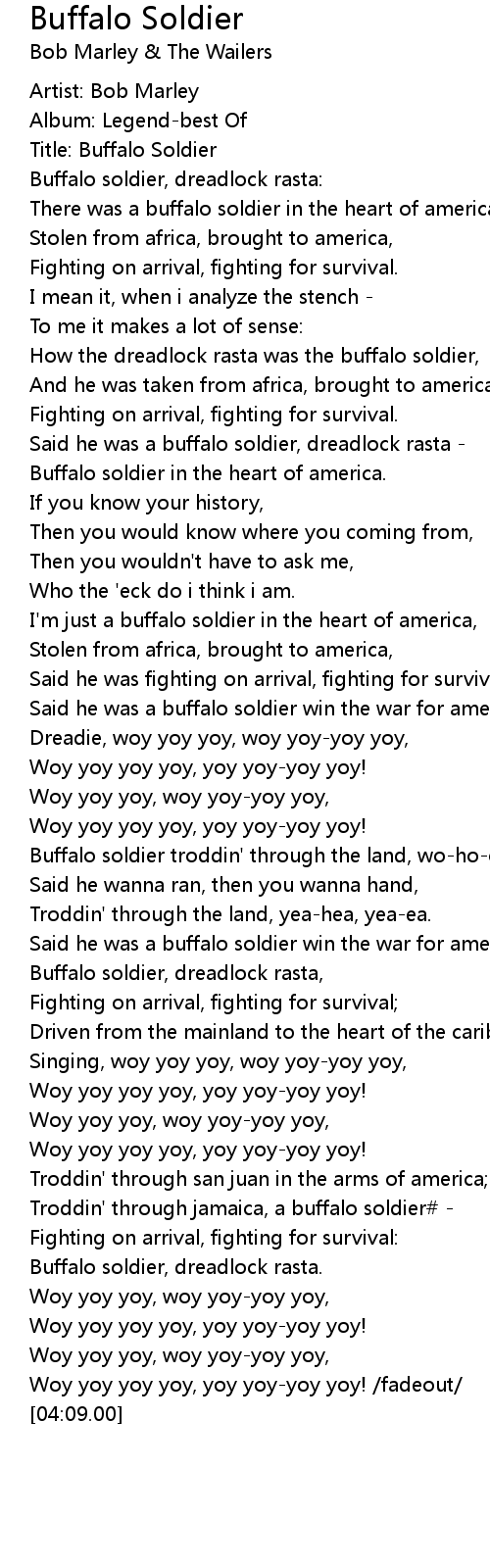 Said he was a buffalo soldier, dreadlock rasta - |
