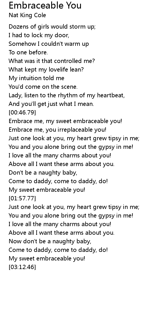 Embrace me, my sweet embraceable you! |