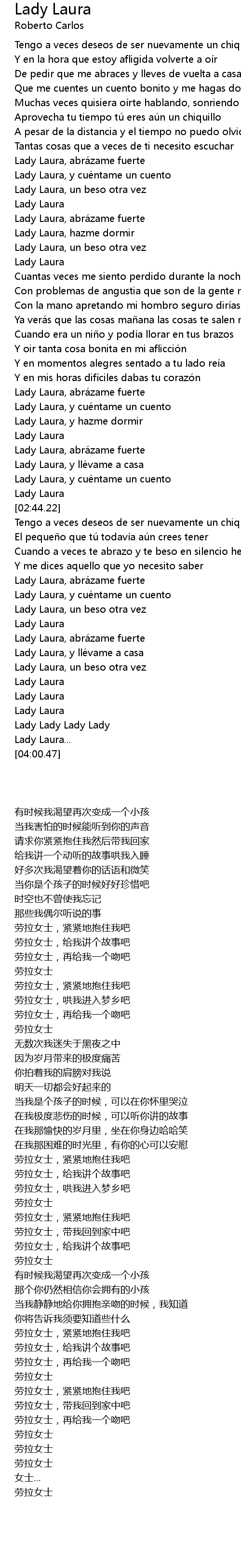 | [03:34.88] | Lady Laura, abrázame fuerte |
