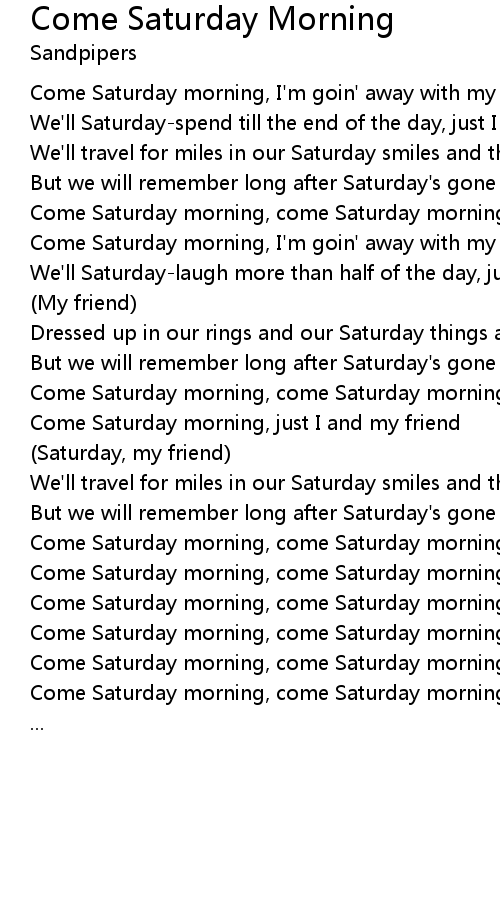 Come Saturday morning, come Saturday morning |