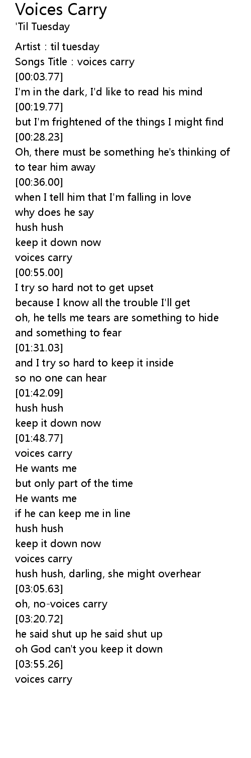 | [00:02.33] | Songs Title:voices carry |