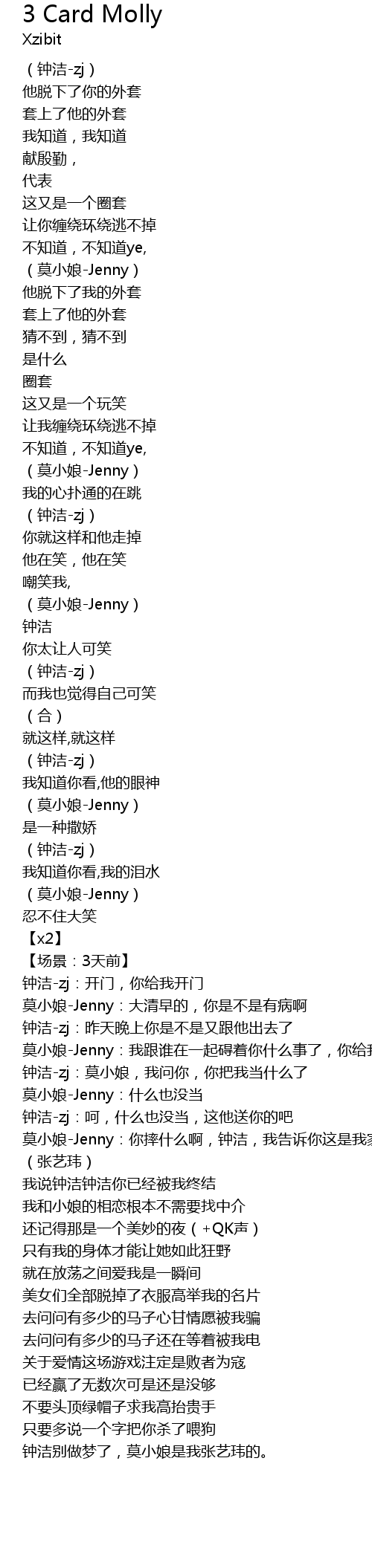 | [02:32.103] | mo xiao niang Jenny: wo gen shui zai yi qi ai zhe ni shen me shi le, ni gei wo chu qu |