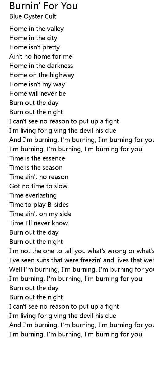 And I'm burning, I'm burning, I'm burning for you |