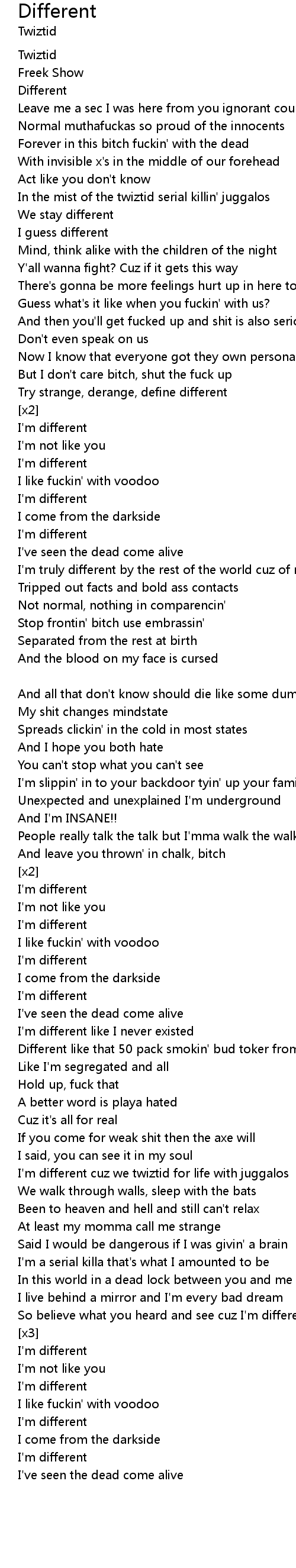 I'm different cuz we twiztid for life with juggalos |