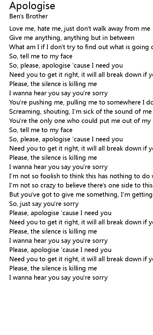 So, please, apologise 'cause I need you |
