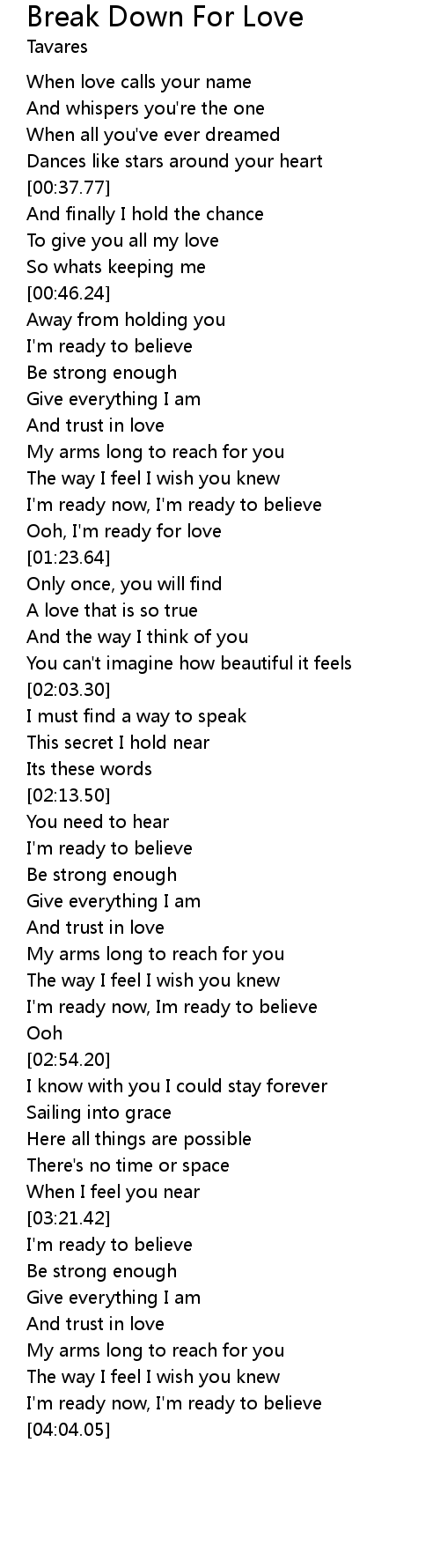 Break Down For Love Lyrics