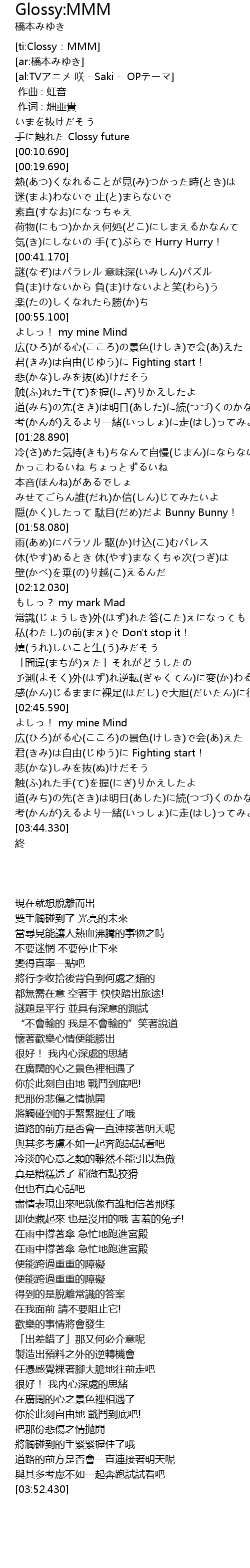 | [03:18.310] | 君(きみ)は自由(じゆう)に Fighting start! |