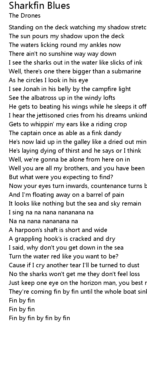 I see the sharks out in the water like slicks of ink |