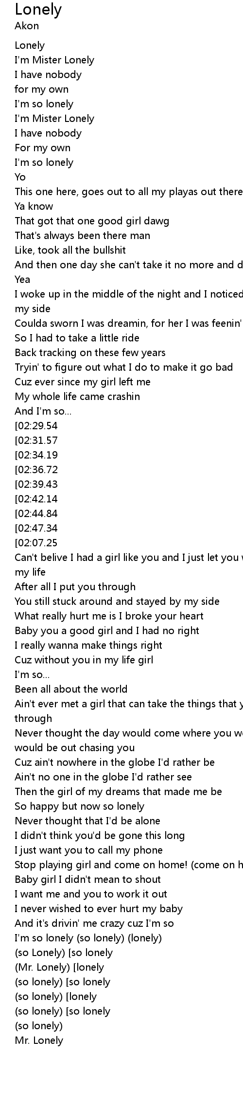 [02:50.05][02:07.25][01:24.95] I'm so lonely