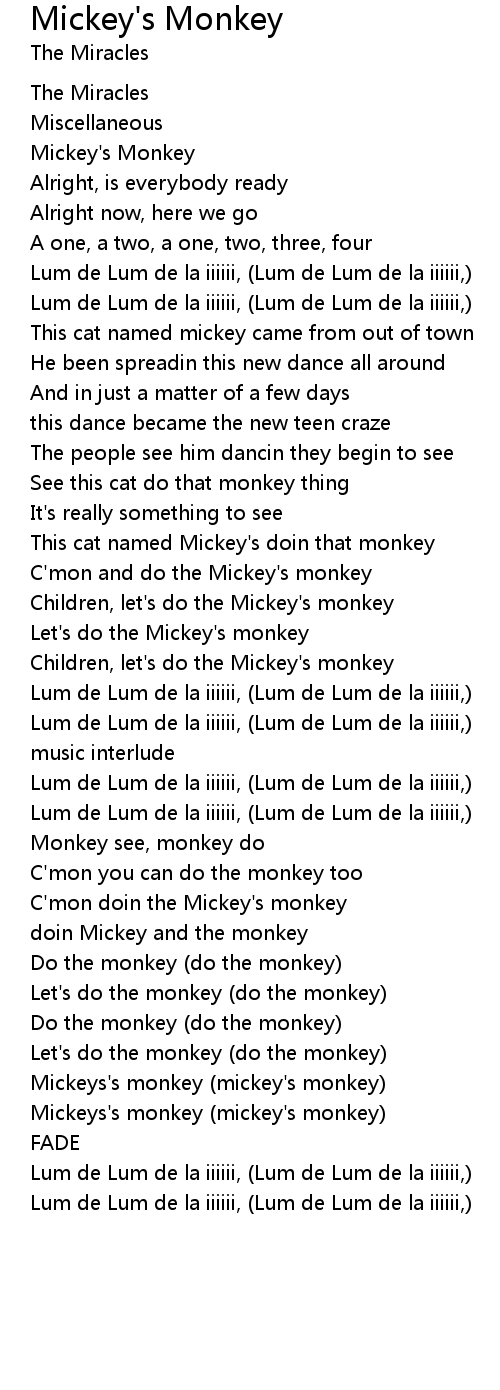 C'mon and do the Mickey's monkey |