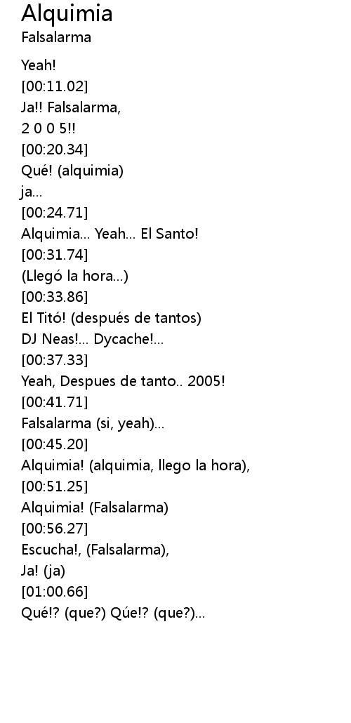 | [00:52.37] | Alquimia! (Falsalarma) |