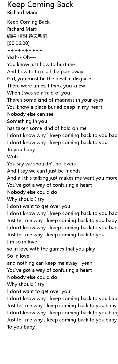 | [00:01.00] | Keep Coming Back |