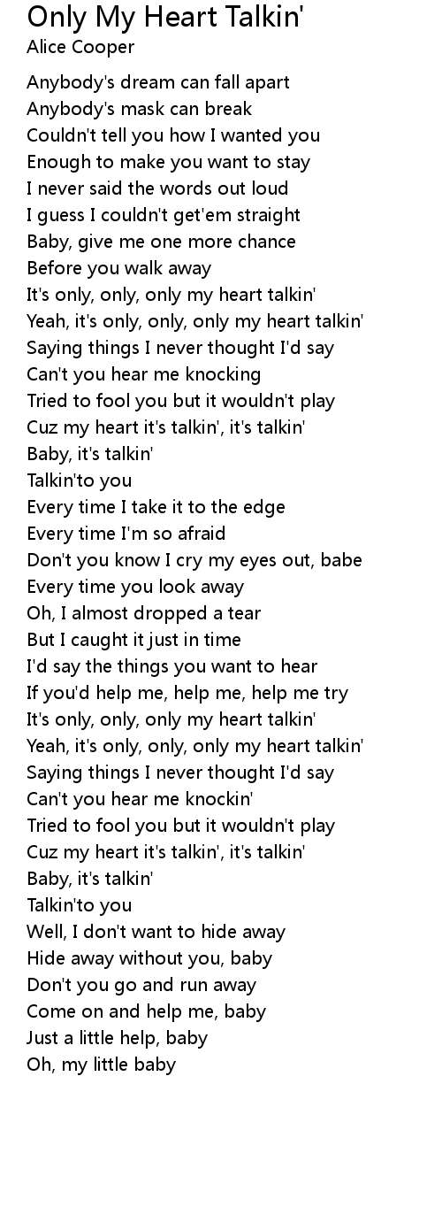 Yeah, it's only, only, only my heart talkin' |