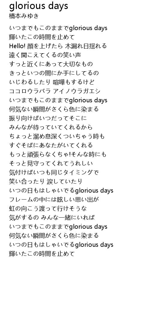 いつまでもこのままでglorious days