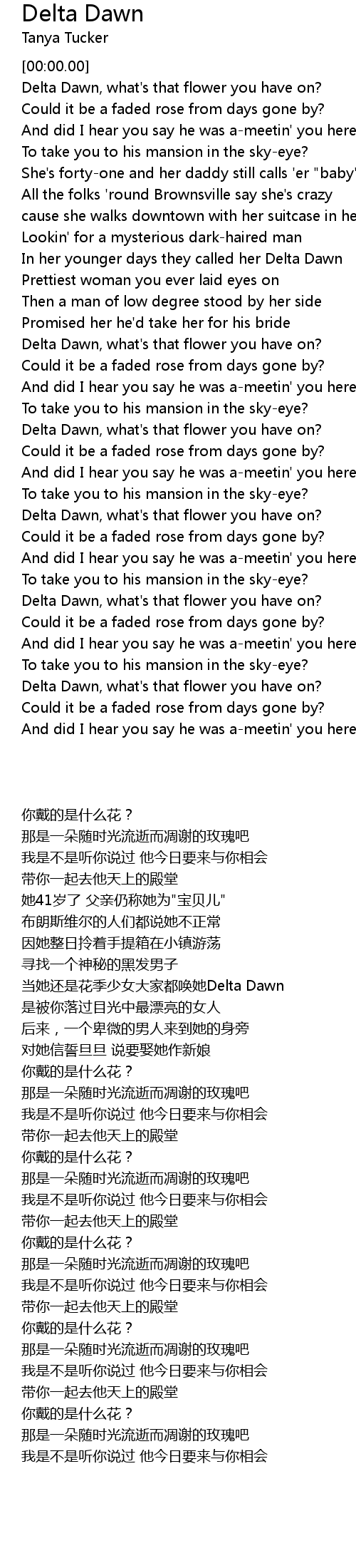 In her younger days they called her Delta Dawn |