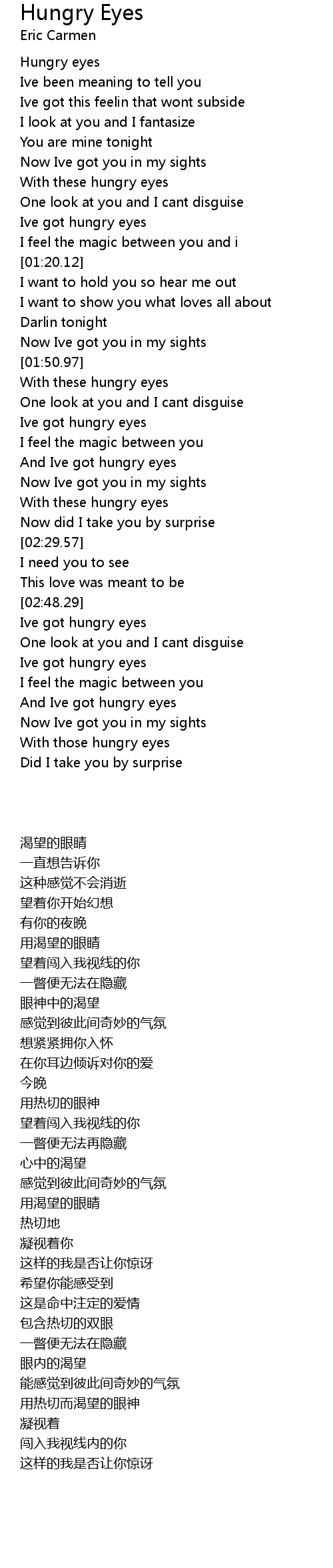 And Ive got hungry eyes |