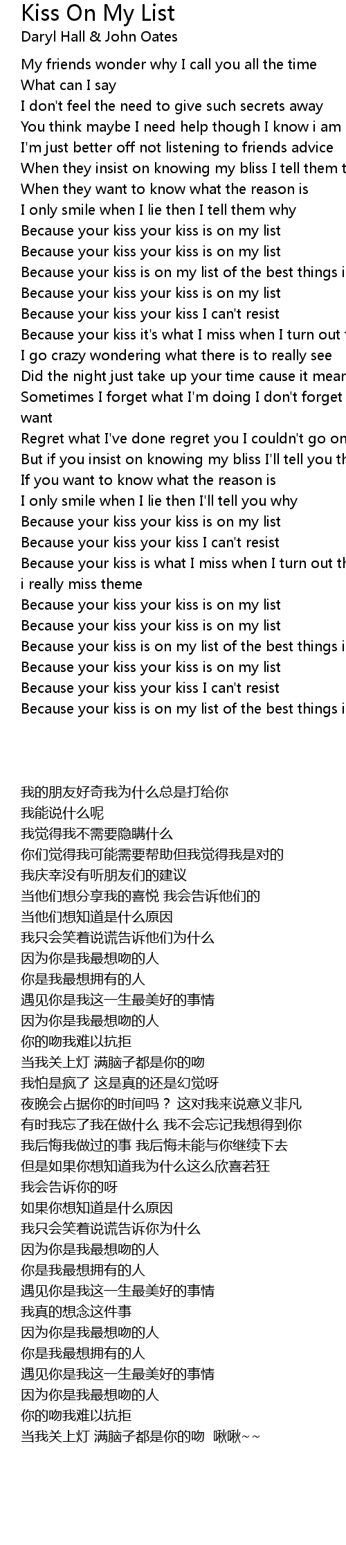 Because your kiss your kiss is on my list |
