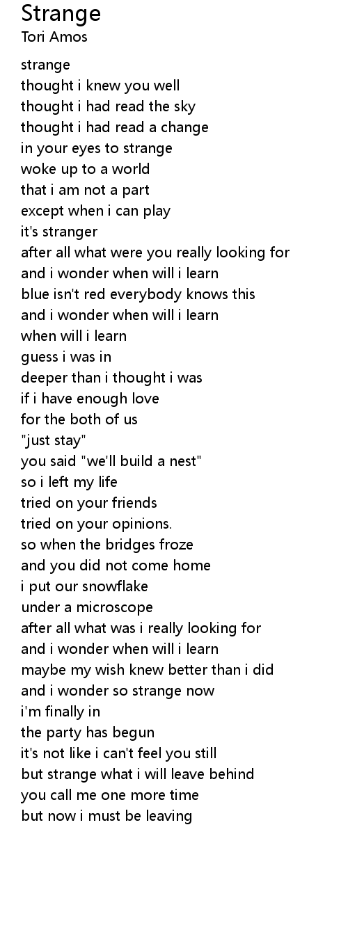 and i wonder so strange now |