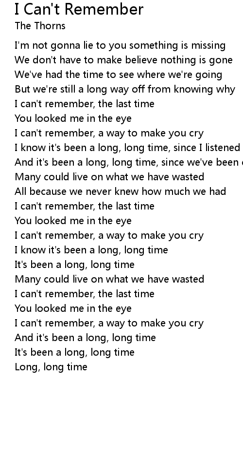 I know it's been a long, long time, since I listened |