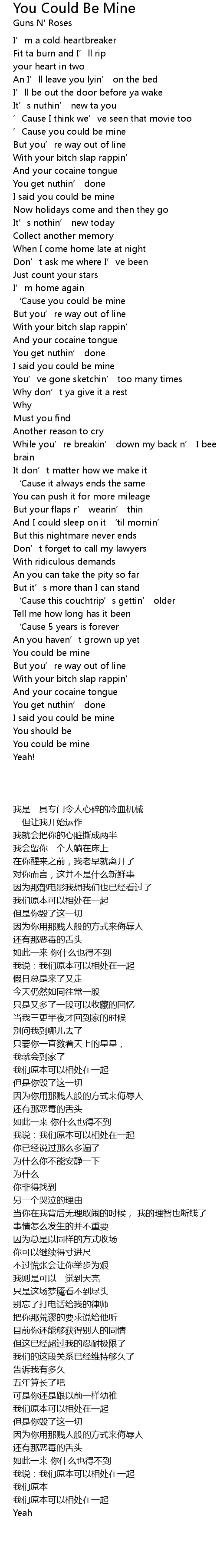 | [02:35.250] | ' Cause you could be mine |