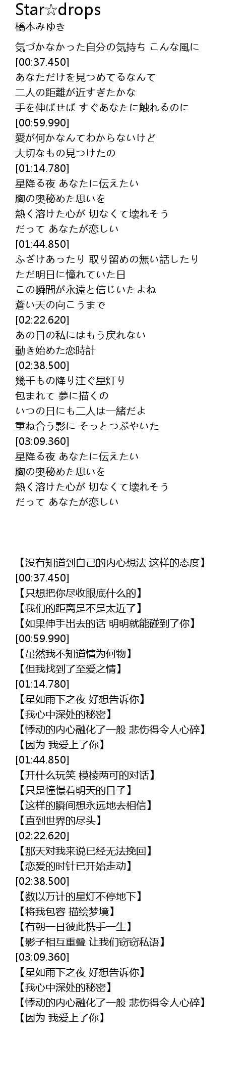 | [03:38.350] | 星降る夜 あなたに伝えたい |