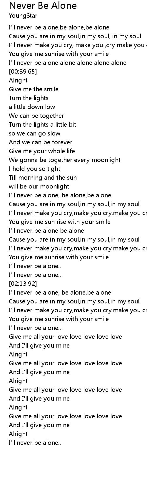 | [00:33.24] | I' ll never be alone alone alone alone alone |