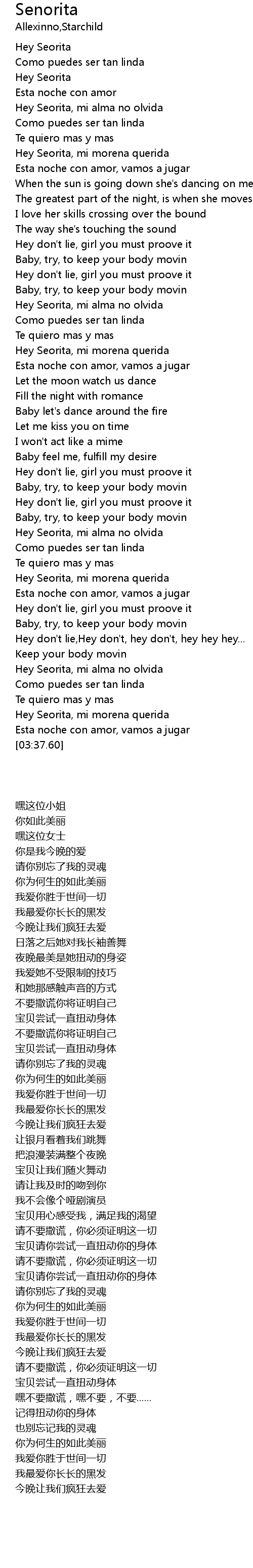 | [03:11.76] | Hey Seorita, mi morena querida |