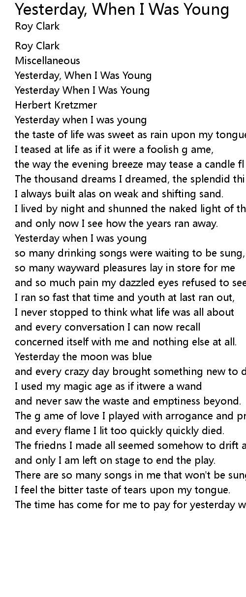 Yesterday When I Was Young |