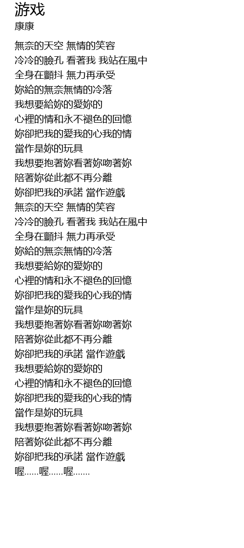 | [02:24.760] | nǎi què bǎ wǒ de chéng nuò dāng zuò yóu xì |