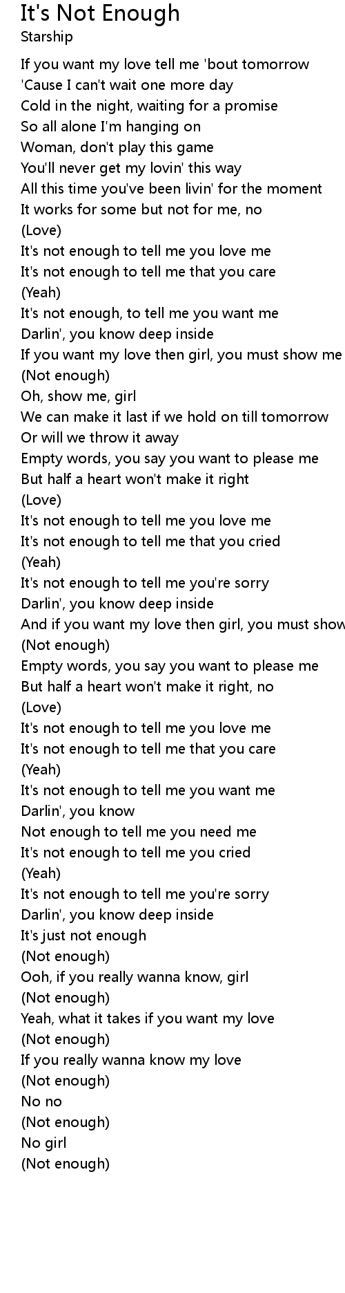 It's not enough, to tell me you want me |