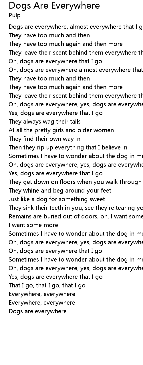 Oh, dogs are everywhere almost everywhere that I go |