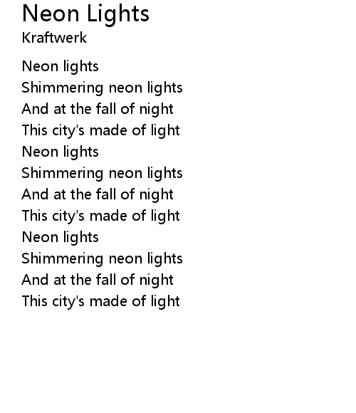 | [01:23.24] | Neon lights |