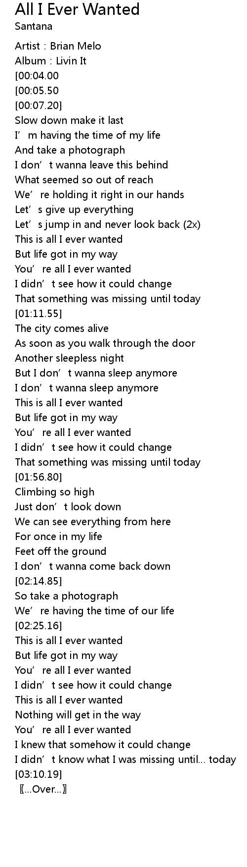 | [03:12.60][00:04.00] | Title: All I Ever Wanted |