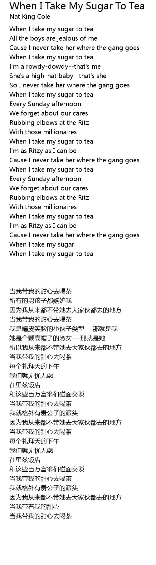 When I take my sugar to tea |