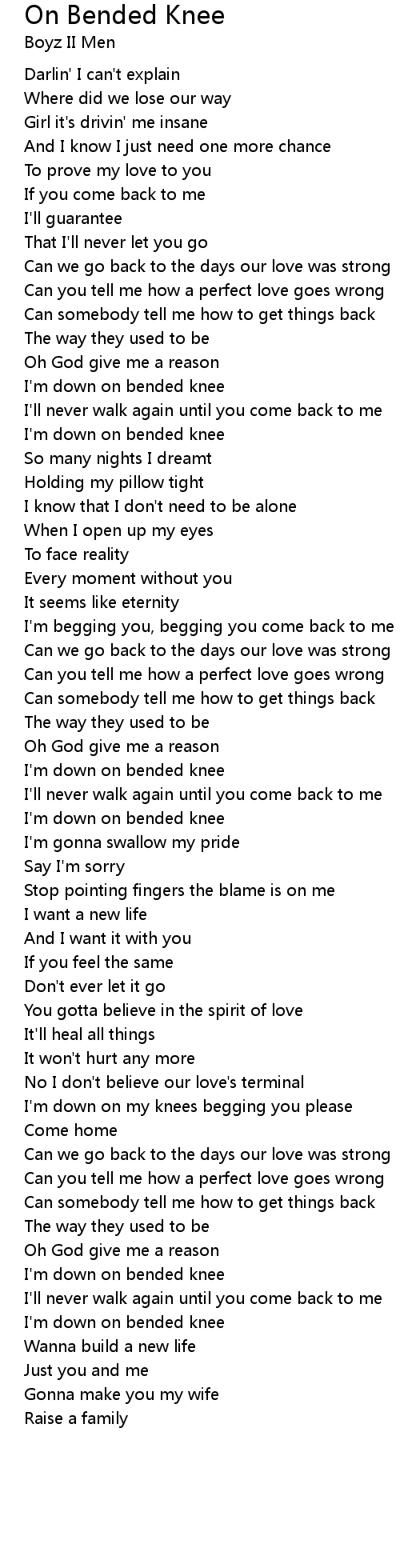 I'm down on my knees begging you please |