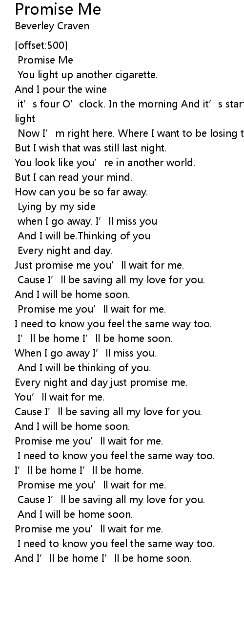 | [02:53.90] | Promise me you' ll wait for me. |