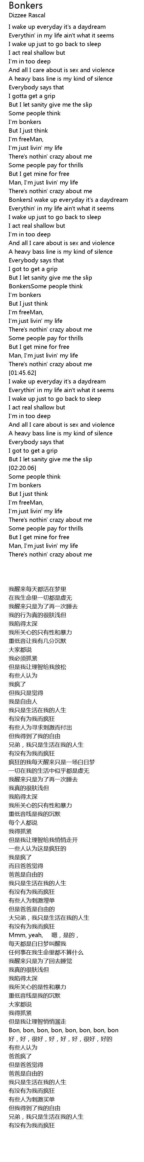 [01:00.92] BonkersI wake up everyday it's a daydream
