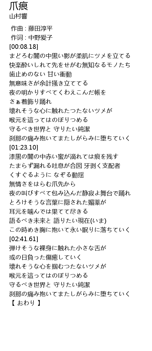 | [02:19.71] | 耳元を噛んでは果てて尽きる |