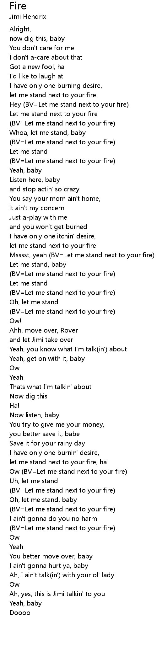 (BV=Let me stand next to your fire) |