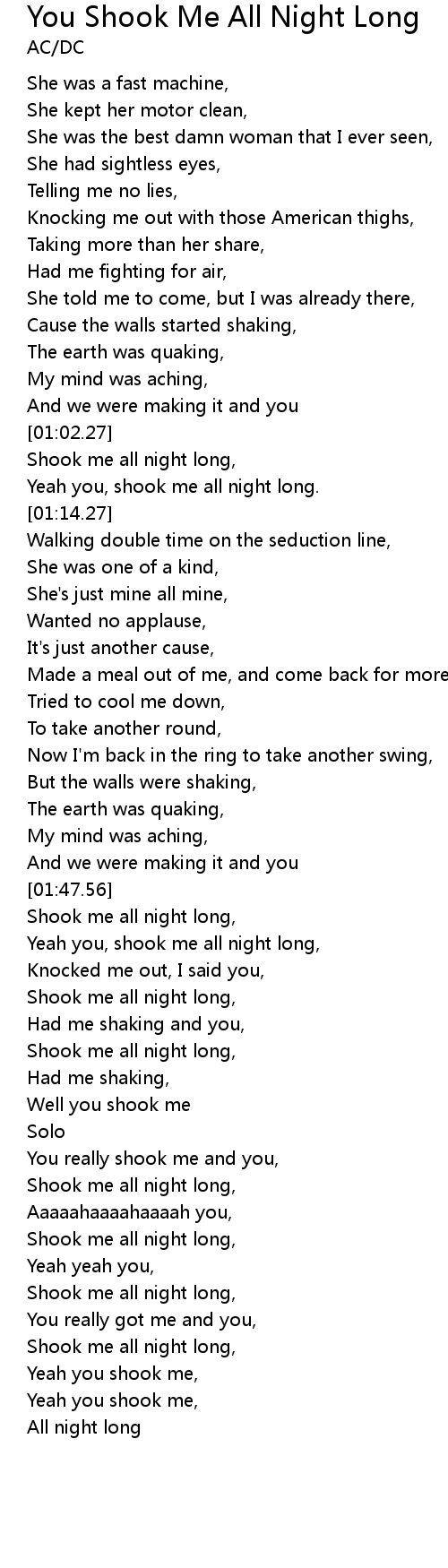Yeah you, shook me all night long, |