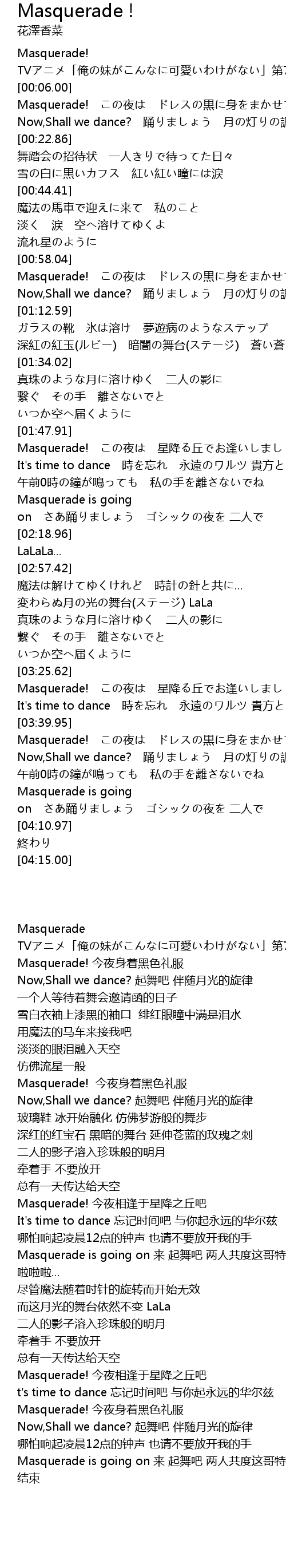 | [00:08.64] | Masquerade! この夜は ドレスの黒に身をまかせて |