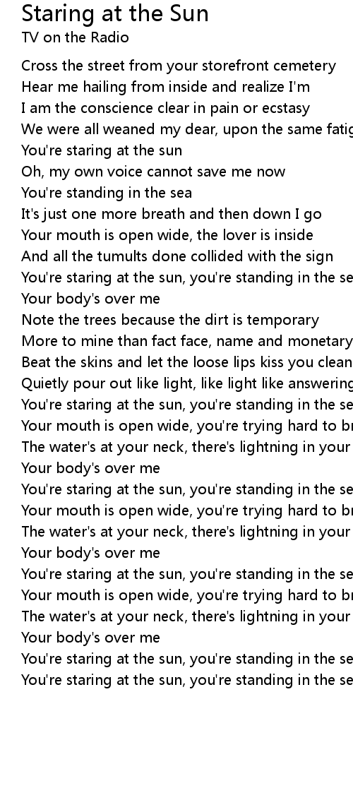 You're staring at the sun |