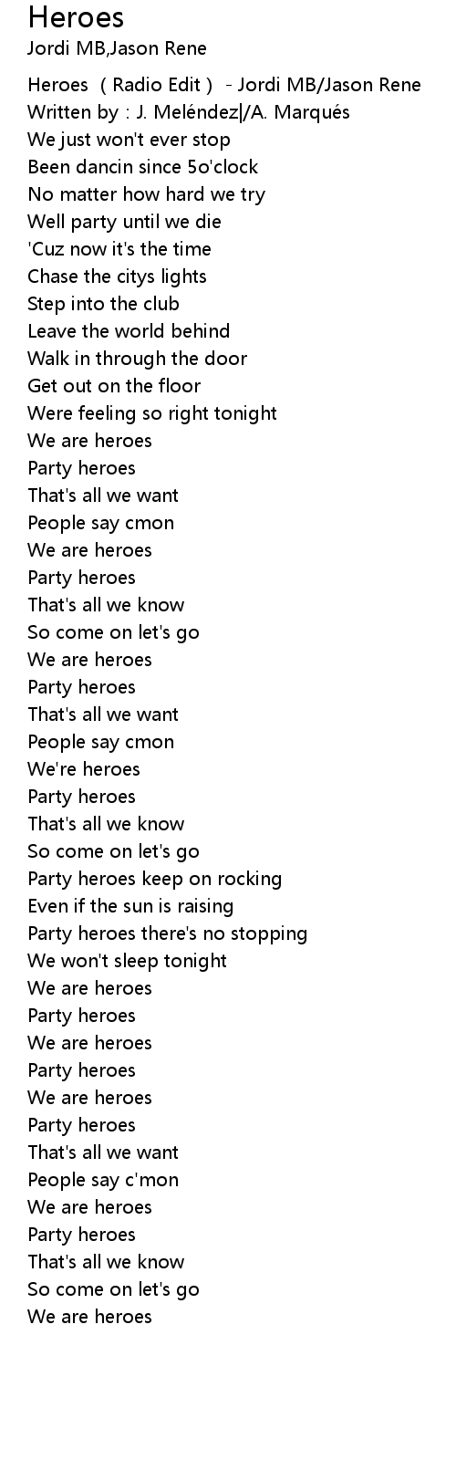 | [00:00.106] | Heroes Radio Edit Jordi MB Jason Rene |